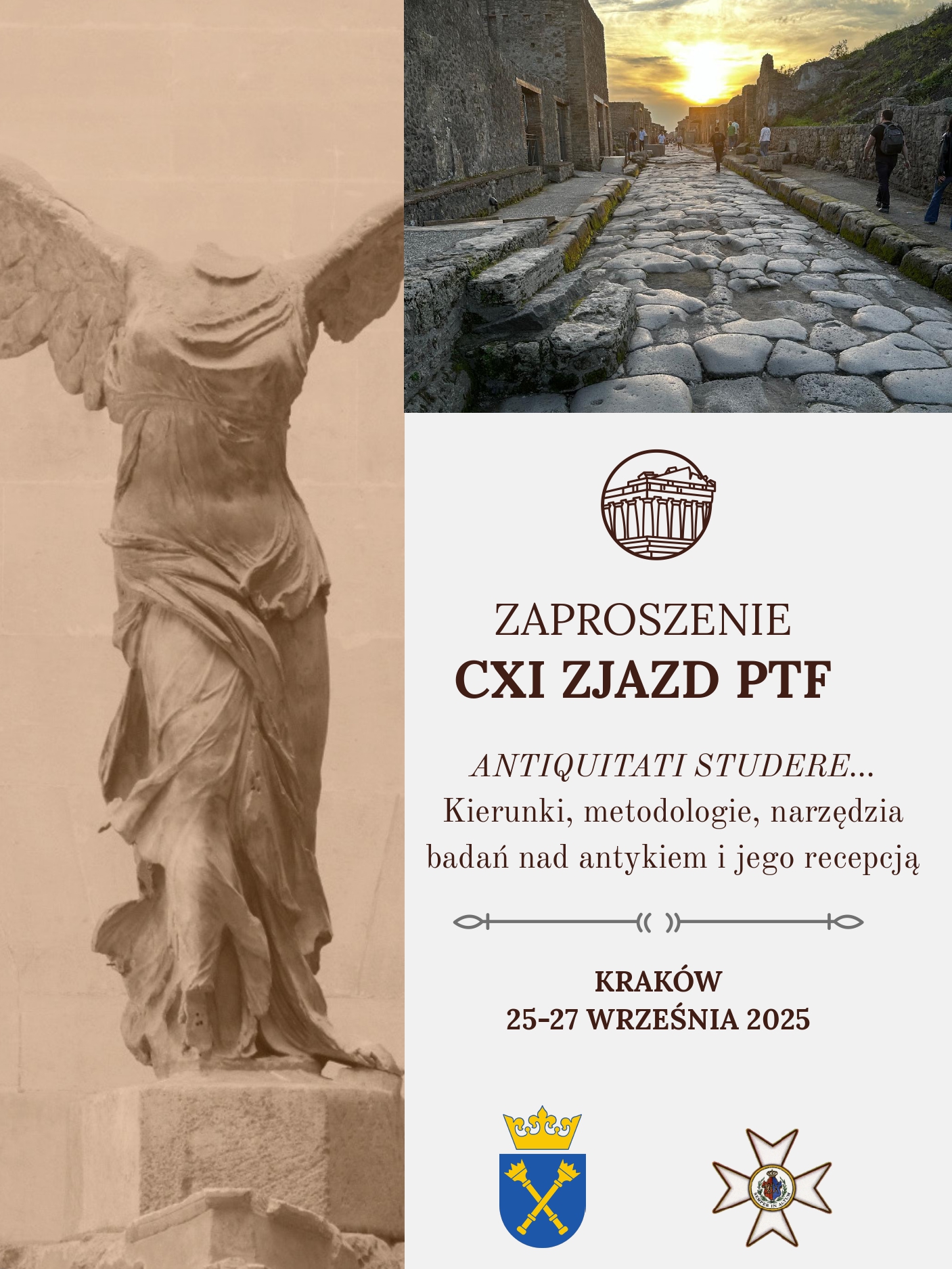 W dniach 25–27 września 2025 roku w Krakowie odbędzie się CXI Zjazd Polskiego Towarzystwa Filologicznego oraz ogólnopolska konferencja naukowa „Antiquitati studere… Kierunki, metodologie, narzędzia badań nad antykiem i jego recepcją”.